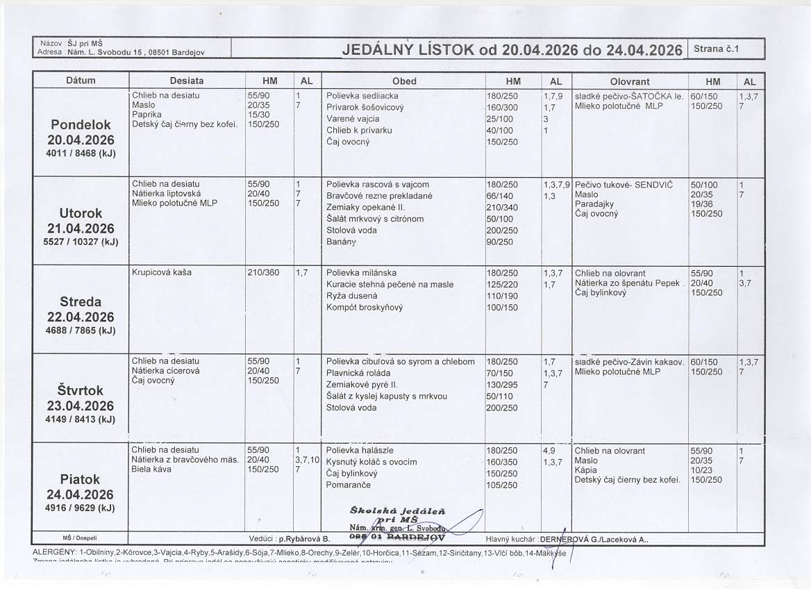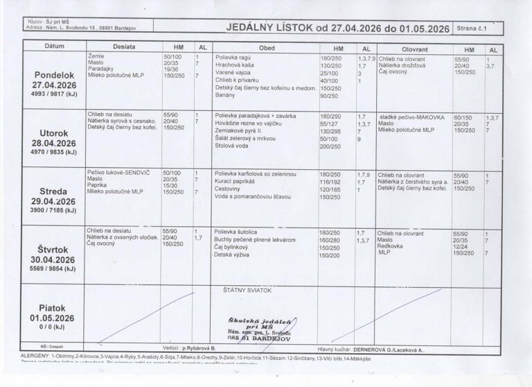 Vedúca školskej jedálne: Božena Rybárová