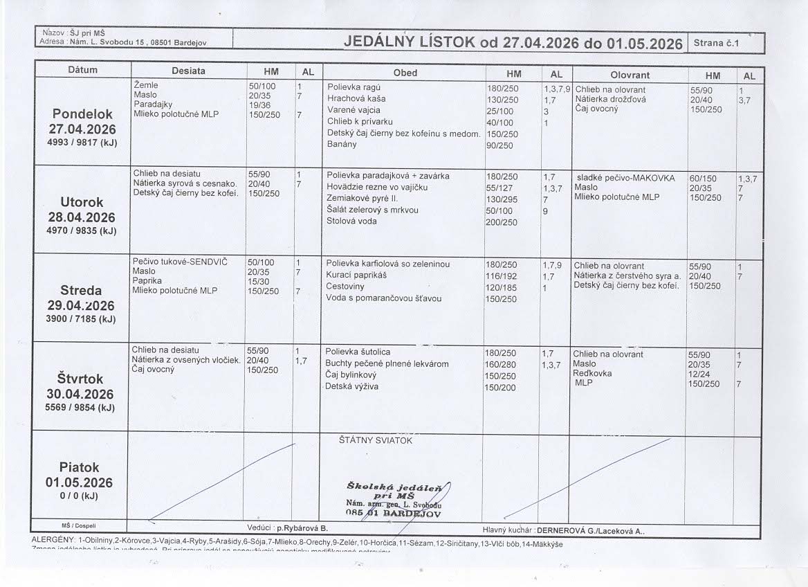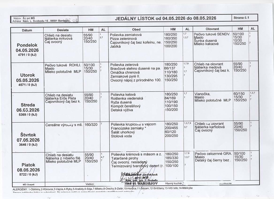 Materská škola na Nám. arm. gen. L. Svobodu 15, 085 01 Bardejov